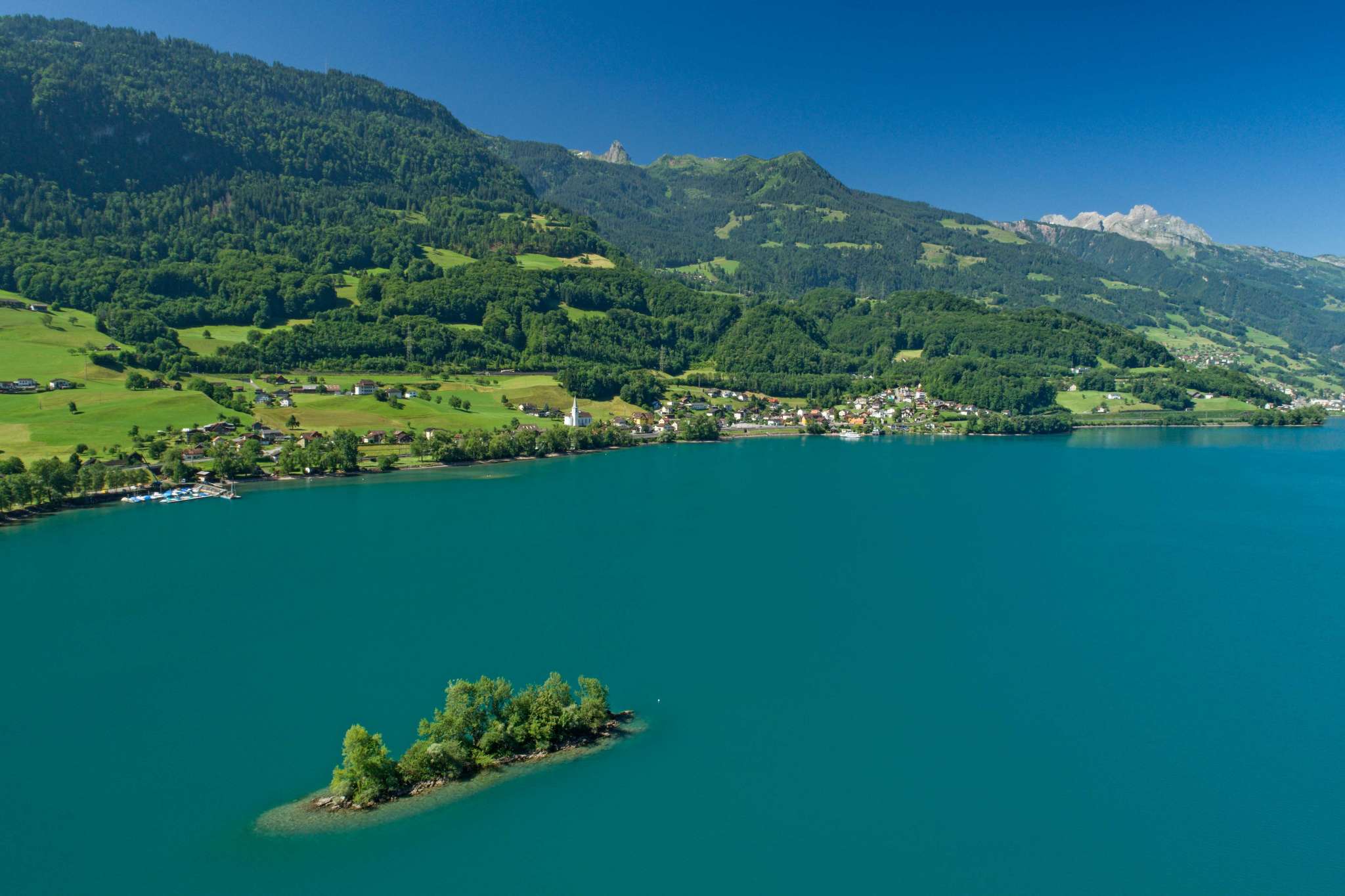 The Bistro Hafen West on Lake Walen offers a sun terrace with an unobstructed view of the lake and the Churfirsten mountains. It is a self-service bistro with a selection of local and market-fresh dishes.