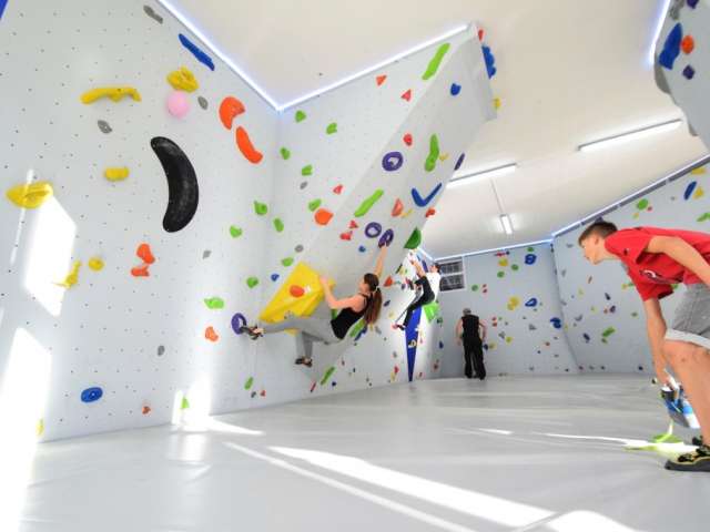 Boulderei GmbH in Flums offers a 220 m2 bouldering hall with routes for all levels of difficulty. A lounge and bar provide relaxation, while a children's corner welcomes younger guests.