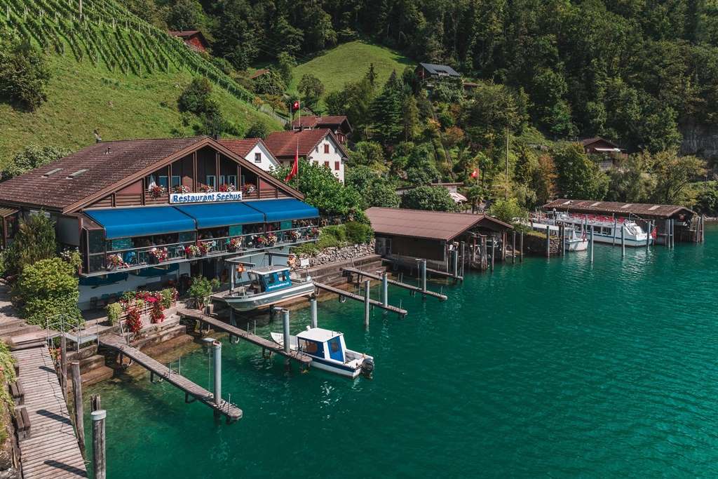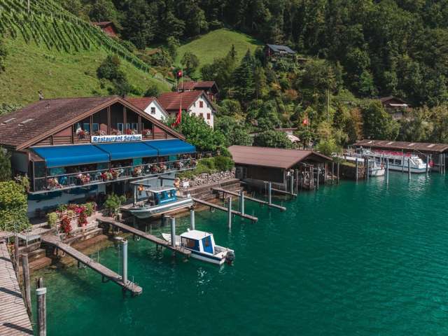 The Seehus Quinten restaurant is located directly on Lake Walen and offers a selection of fish, meat and vegetable dishes. In summer, the large lakeside terrace invites you to linger with a view of the lake and the calming atmosphere of Quinten.